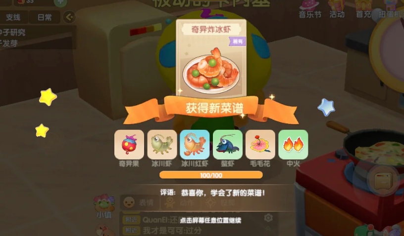 奇异炸冰虾是一道4星级稀有料理,其基础配方为奇异果×1、冰川虾×1、冰川红虾×1、鳌虾×1及毛毛花×1。这道菜品需要玩家厨师等级达到10级后通过研究菜谱解锁,餐厅售价648摩尔豆,烹饪耗时30分钟,保温时间可达2小时30分钟。材料获取方面,奇异果和毛毛花需在种子商店购买对应种子种植获得,其中毛毛花需玩家等级达到13级才能购买;冰川虾与冰川红虾全天可在拉雅雪山钓得;鳌虾则需在夜晚前往家园池塘或雪山鱼池捕捉。