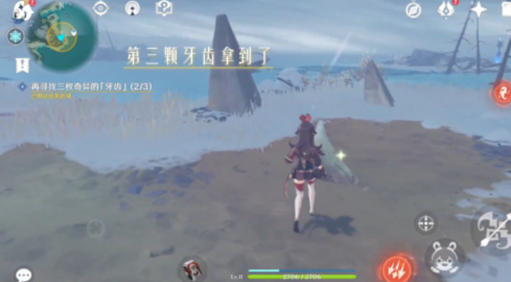 任务触发需先获取眠龙谷的奇异牙齿,随后与雪山营地NPC乌尔班对话解锁后续目标。三颗牙齿位置固定:第一颗位于龙脊雪山北部河道小岛,需用深赤之石破除坚冰;第二颗在愚人众守卫的平地区域;第三颗需击败霜铠丘丘王后获取。收集完成后,牙齿每48小时刷新一次,可用于锻造龙脊长枪等武器。