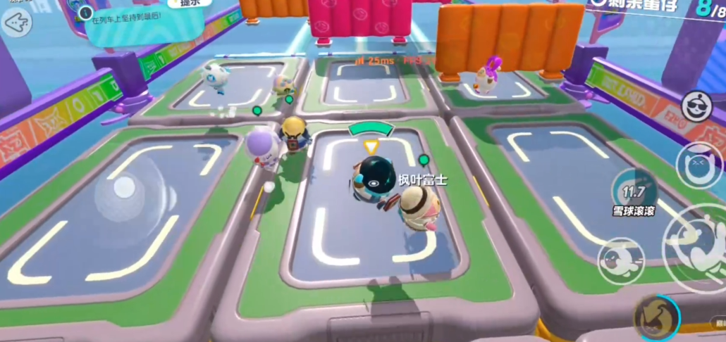 幸运色关卡要提前盯着屏幕颜色变化,快速反应跳到对应地板。多人抢同一块地板时,可以稍微等待或换方向。危机列车地图建议贴边移动,利用列车轨道反弹回平台。同心圆关卡要不断调整位置,跟着旋转方向同步移动,别被甩出去。找圈圈地图记住甜甜圈下降规律,优先站在中间区域方便转移。
