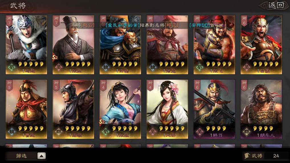 金铢尽量留着抽核心武将,比如曹操、刘备、诸葛亮这类自带强力指挥战法的角色。多余的紫色武将别急着分解,先转化成战法点提升主力队伍强度。铜币除了招募还要留足转化战法点的量,后期消耗非常大。每天记得打贼寇和屯田,稳定获取资源才能支撑持续招募。有些金色武将虽然稀有但实战效果不如某些紫将组合,比如乐进、关平这类高性价比武将值得培养。前期先用系统赠送的孙坚、华雄过渡,等抽到核心橙将再调整阵容。