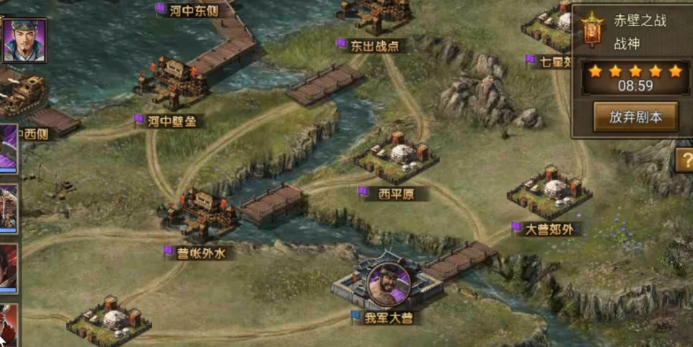 战神难度需优先处理关键事件触发剧情。路线为:我军大营→东平原→营帐外水→河中壁垒→河中西侧→曹军壁垒,占领营帐外水时NPC对话必须选择第一项以触发后续草船借箭事件。河中西侧需留守武将抵挡曹军3分钟进攻,完成后可瞬间占领曹军西水等4座城池。攻占曹军壁垒后派遣武将至曹军东水触发事件,再集中兵力突进曹军大营,最后围攻华容道。