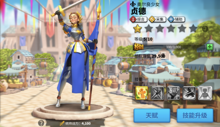 优先点满核心技能,比如贞德的主动增益、孙武的范围伤害。副将不需要点满天赋,但主将的天赋必须根据定位精准分配,比如骑兵主将点骑兵天赋,步兵主将点防御或技能天赋。资源紧张时,紫色副将比金色副将更容易成型,尤其是远征商店能兑换的埃塞尔,对零氪玩家非常友好。