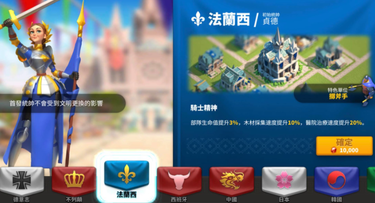 偏爱防守和持久战的玩家可以试试法兰西文明,部队生命值提升和医院治疗加速能显著降低战损。木材采集加速则能平衡资源产出,避免因频繁修理建筑或部队而陷入资源短缺。这种搭配让你即便遭遇偷袭也能快速恢复,保持发展的连贯性,尤其适合偶尔参与联盟防守的半休闲玩家。