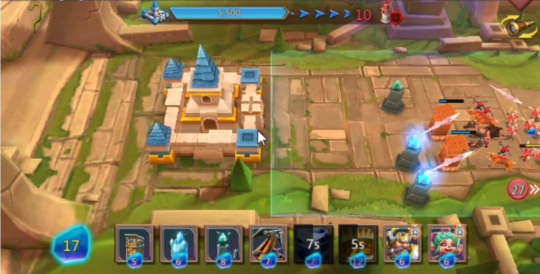 火球术与箭雨技能适用于清理密集小兵,火箭技能则专门针对高血量英雄单位。防御塔的梯次布置需形成纵深保护,电塔应置于第四排安全位置,前方用石塔吸收伤害。熔岩塔的高额单体伤害适合应对关卡末段的敌方首领,但部署时机需等待小兵基本清完。步兵单位在最终阶段可作为肉盾保护图腾输出,不宜过度召唤以免能量短缺。