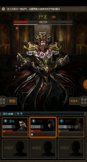 关键在于队伍配置、道具准备、战斗节奏控制和机制应对。队伍推荐使用胖子、彩儿和吕烽的组合,胖子负责嘲讽吸收单体伤害,彩儿专注治疗保证队伍生存,吕烽作为主力输出快速削减尸王血量。战斗前务必制作或携带律鬼丹,该道具能显著减少鬼怪造成的伤害,同时建议佩戴律鬼镜进一步降低战斗难度。尸王的攻击模式分为前后两阶段,前期以高伤害单体攻击为主,后期转为群体攻击并附带中毒效果,需根据阶段调整策略。
