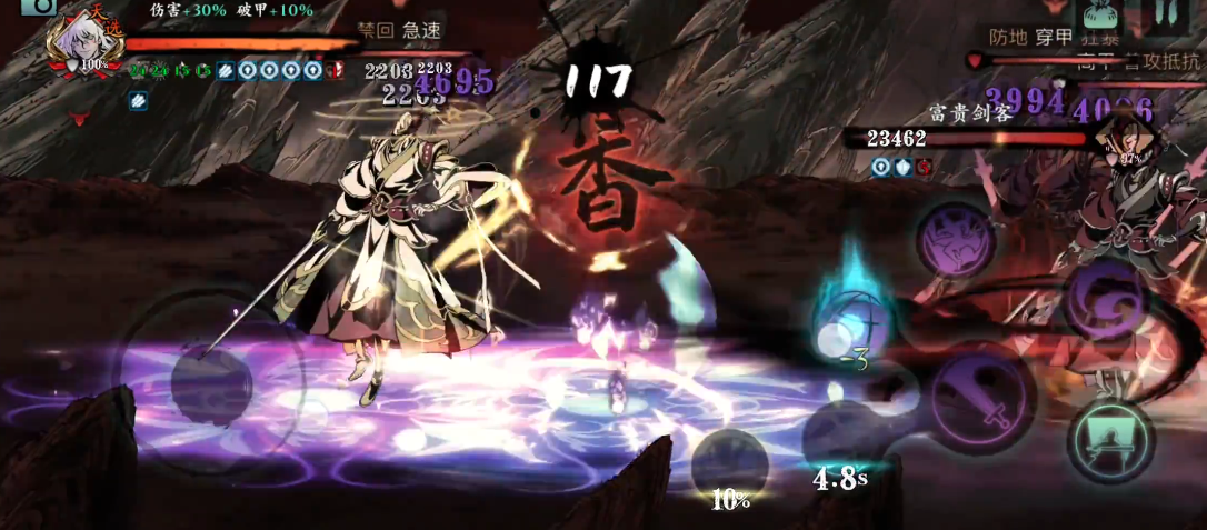 建议先用防御姿态抵挡第一个剑客的眩晕攻击,等第二个剑客接近时立即释放觉醒技。觉醒结束后三个剑客会被缴械并聚集在角落。也可以选择进图直接翻滚躲避冲刺后开觉醒,但这个操作不太稳定,第三个剑客有时会跑得慢导致翻车。注意关卡内若出现荆棘词条建议直接重开,这个属性会大幅增加挑战难度。