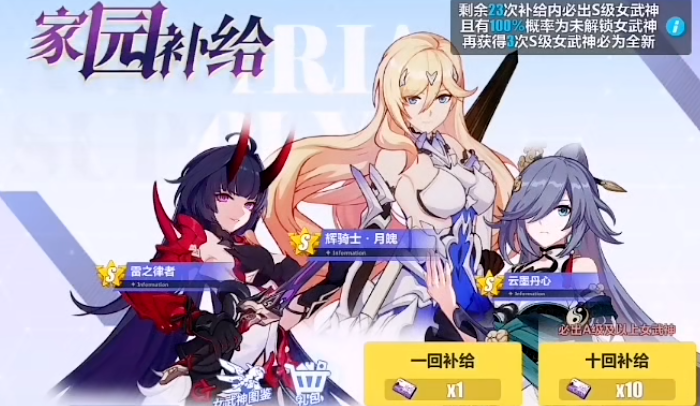 除了剧情赠送和碎片兑换,游戏内的家园补给也是一个获取常驻角色的重要途径。这个卡池包含了一系列推出时间较早的S级和A级女武神,例如空之律者、理之律者、云墨丹心、雷之律者等。虽然版本更迭,她们的绝对强度可能不如最新的限定角色,但其中不少角色机制依然优秀,在深渊、战场等玩法中仍有出场空间。作为新手,利用家园补给卡或偶尔投入一些水晶有机会补全关键的角色类型,比如强力的元素辅助云墨丹心或具备独特机制的主C空之律者,这能让你应对不同属性敌人时更加从容。