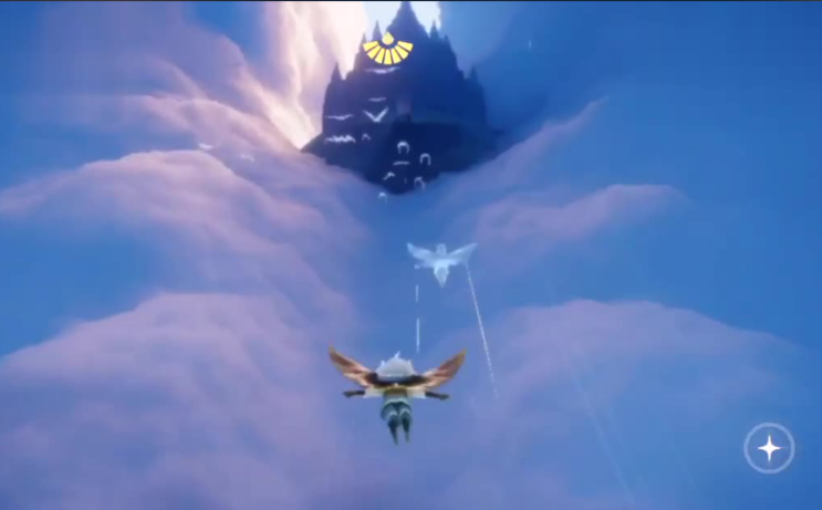 雨林的通关流程大致是从入口开始,穿过一系列木桩和门,在桥梁和洞穴中借助蘑菇恢复能量,顺着管道方向飞。到了一个有很多亭子的开阔区域时,你需要点亮所有灯柱和白蜡烛,这会召唤出一群发光的水母,借助水母的升力可以飞到最高的雨林神庙门口。进入神庙后,飞到最里面的石碑前,在光圈中坐下触发动画,看完动画后神庙后方的大门就会打开,门后就是通往下一个地图霞谷的通道,这意味着雨林的主要探索部分就完成了。