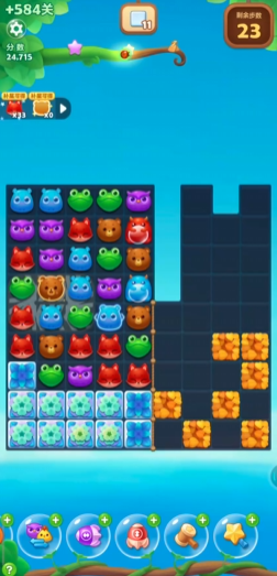 隐藏关584关的核心任务是在有限步数内消除冰块,同时还要应对不断下降的棋盘布局和各种各样的障碍物,比如云朵和毛球。这关的步数通常比较紧张,所以每一步都得好好规划,别急着乱点,先看清楚布局再动手。开局的时候优先去消除那些红色动物特效,这样做能帮咱们增加一些步数,同时把褐色的毛球给清理掉,这能给后续的消除打下基础。