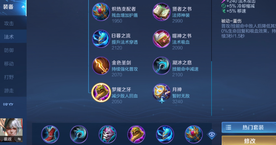 嬴政的核心装备通常包括回响之杖、博学者之怒和虚无法杖,这些能显著提升法术攻击和穿透效果,确保他对坦克和脆皮都能造成有效打击;回响之杖增加移速和法强,触发爆炸特效后能进一步强化清线和消耗能力,而博学者之怒通过百分比提升总法强,让嬴政的技能伤害产生质变,而虚无法杖则在高法抗对手面前维持伤害输出;对于不同局势,顺风时可以选择全输出装如冷静之靴、回响之杖、博学者之怒、虚无法杖和贤者之书,这套组合能最大化法术爆发,让嬴政在团战中成为主要的伤害来源。在逆风情况下,则可以优先考虑生存装备如时之预言或凝冰之息,这样不仅能保证续航,还能通过减速效果提高大招命中率,从而在困境中依然能打出可观伤害。