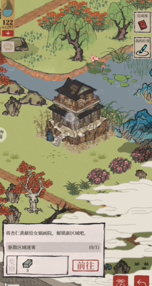 在秦淮河畔兑换所需的核心材料金花笺本身也是一种需要合成的物品。金花笺同样可以在秦淮河畔的同一个商店兑换获得,所需材料为:1个原料纸、5个野草和3个杜鹃花。而其中的原料纸需要通过调查探险地图中的纸浆池来获取,每次调查需要消耗30点体力。完整获取一个杏仁黄,实际上需要你先收集野草、杜鹃花以合成金花笺,同时还要去采集皂荚和挖掘铁矿石。皂荚需要通过砍伐地图上的皂荚树获得;铁矿石需要挖掘散落在地图各处的矿石点;野草在道路河边随处可见;杜鹃花则从花丛中采集。