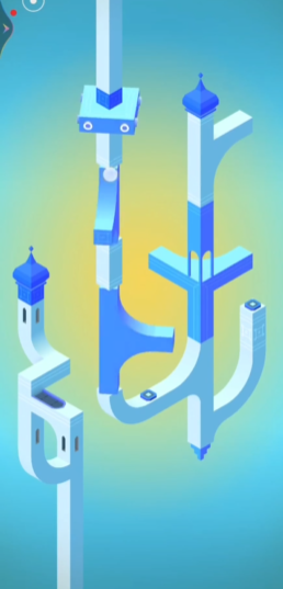 成功进入第一个门后各位应该首先进入下图所示的大门之中。从大门内出来后玩家可直接一直沿着墙壁走,然后在把方块移动到画面左边的位置,待得爬上台阶后,即可成功的进入下一个大门区域。在这个过程中,你需要时刻注意周围的环境,观察建筑结构的变化,一些看似无法地方,往往通过旋转整个场景就能创造出新的路径。关卡中设置了许多巧妙的视觉陷阱,你需要利用旋转、滑动等动作,让主角艾达通过这些障碍,到达指定的位置。