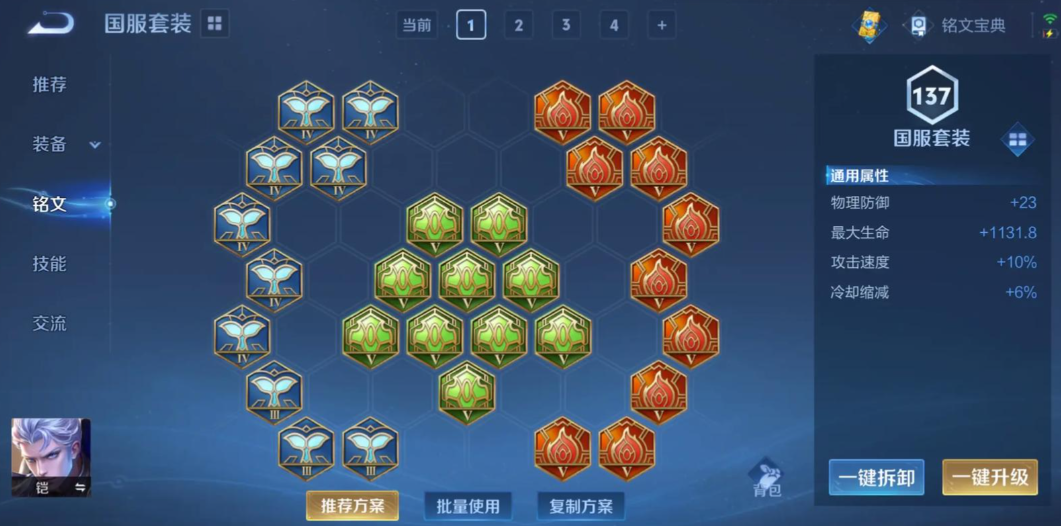 铭文搭配对铠的输出和生存至关重要常用的组合包括10个祸源、10个鹰眼和10个狩猎,这种铭文提供物理攻击、暴击率和穿透效果,让铠在前期对线时就能建立优势。红色铭文选择祸源可以增加暴击率,绿色鹰眼提供物理穿透,蓝色狩猎则提升攻速和移速。这种配置能帮助铠在攻击敌人时造成更多伤害,同时通过移速加成弥补他腿短的缺陷,增强追击和逃生能力。如果偏向坦克抗压流,可以将部分红色铭文替换为宿命,蓝色换成调和,这样能增强前期生命值和回复效果,保持更好的续航和抗压能力。