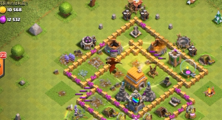 龙流战术通常将龙与气球兵等兵种搭配,利用空中优势无视城墙,配合狂暴法术或闪电法术来突破防御。这种组合在八本和九本阶段能轻松应对多种布局,龙的群体伤害与气球兵的建筑针对性相辅相成,形成高效的推进力。