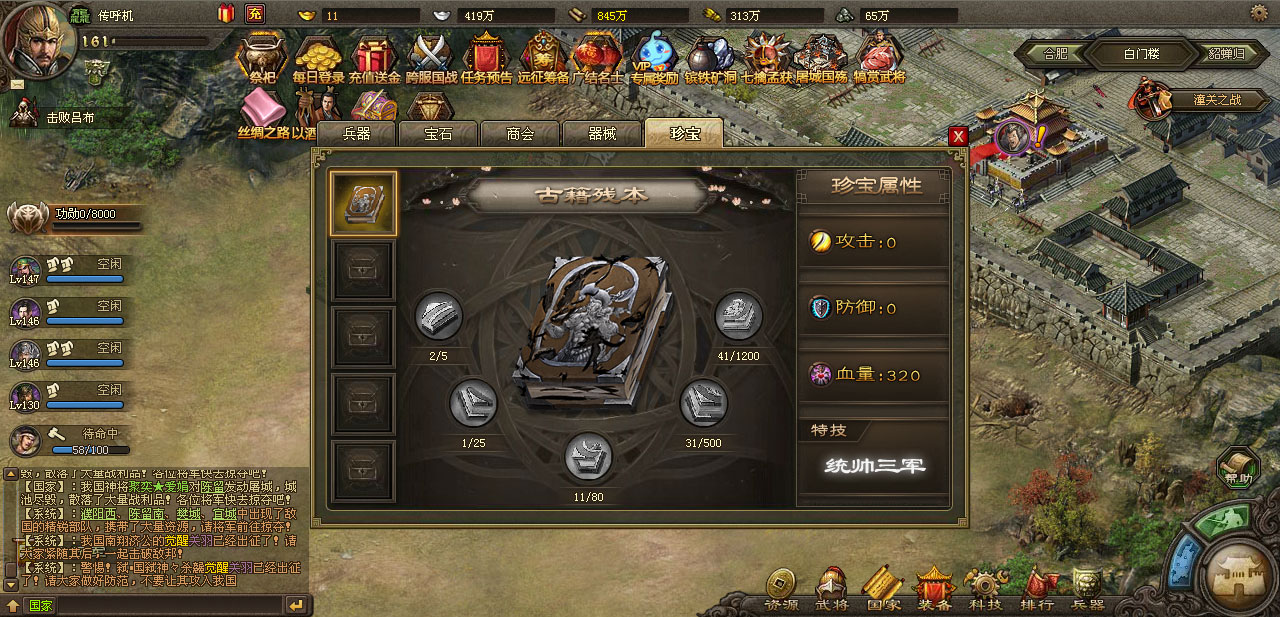 陈宫副本在游戏中是一个以城池地形为背景的挑战关卡,相较于一些拥有地形加成的副本,其难度设定相对适中。副本中,陈宫及其麾下副将的基础兵力均维持在四万左右,且均不享受地形带来的额外属性增益,这为我们的战术部署提供了一定的稳定预期。通关的核心关键在于合理的硬件准备与清晰的阶段目标划分。在进场前,确保兵器如乌蚕鞭、修罗盾与护军符达到一定的等级基准是必要前提,这直接关系到部队的攻防与生存能力。战略上需要明确,此战的目标并非速战速决,而是要通过有序的消耗,将敌方主力,特别是陈宫本体的实力在最终决战前尽可能削弱。