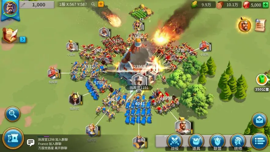 实战中关羽部队以纯步兵编队为主,天赋优先点满步兵、技能与反击分支,最大化技能伤害与生存能力。中国文明的行动力加成可提升野外作战频率,更快清理中立单位、支援盟友,同时建造速度优势能快速升级兵营与学院,解锁高阶步兵兵种与科技,进一步强化关羽部队战力。团战中关羽靠前承伤触发反击,配合技能循环打出持续爆发,文明带来的防御属性让部队更抗揍,延长战场持续作战时间。