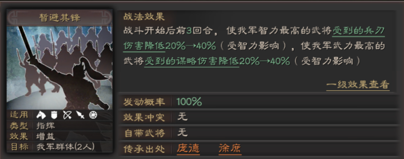援护体系可有效转移当锋摧决的攻击目标,独行赴斗、援护甲等嘲讽与援护效果,能强制敌方普攻与当锋摧决锁定高统率武将,保护核心输出与辅助不被伪报针对,武锋阵的主将承伤机制同样适用,配合暂避其锋的智力减伤,可大幅降低当锋摧决的谋略伤害。速度调配同样关键,将己方控制武将速度拉满,优先释放缴械、技穷等控制,比敌方当锋摧决先手出手,形成节奏压制,避免核心武将在被控状态下无法释放战法。