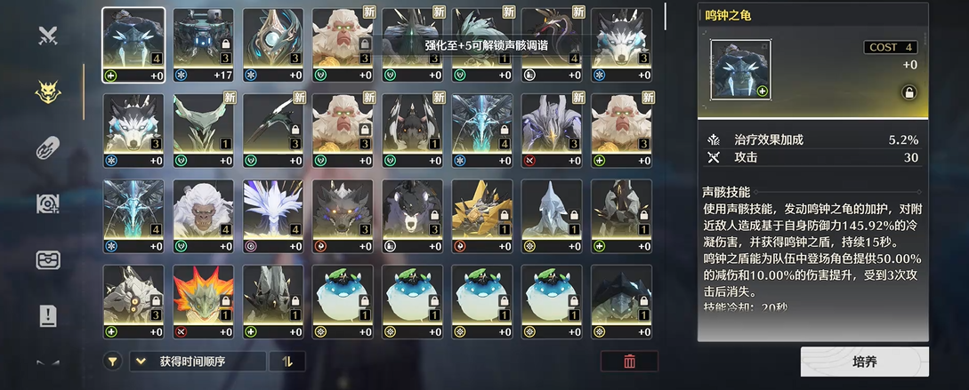 无音区声骸副本在35级需适度参与,不用过度投入体力。此时数据坞等级逐步提升,无音区开始稳定掉落金色声骸,主力角色需凑齐一套主词条正确的金色声骸,输出角色选攻击、暴击、爆伤主词条,辅助选治疗、增益词条,先强化至15级激活核心词条即可,不用追求完美副词条。紫色声骸可作为过渡,金色以下声骸不建议大量强化,避免浪费贝币与强化材料。剩余体力可组队刷无音区,共享掉落不增难度,同时提升数据坞等级,为后期刷取毕业声骸铺垫,组队时搭配增伤角色可提高刷本速度,减少体力消耗。