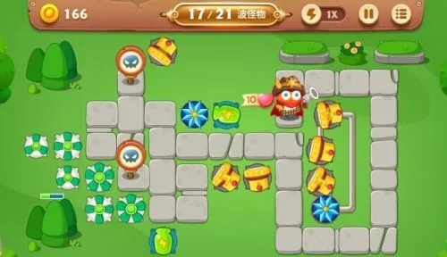 清理障碍物是第九关的核心环节,地图内障碍物均隐藏关键炮塔与金币。击破右上角木箱后会出现两个雪球,这是关卡唯一的减速炮塔,发现后需立即升至满级,确保对怪物的减速控制效果。随后在右侧区域补充魔法球,持续清理右侧障碍物,解锁隐藏的瓶子炮,瓶子炮攻速稳定,可作为辅助输出补充火力。左侧区域则依靠满级雷达逐步清除障碍物,解锁隐藏的回旋镖与瓶子炮,回旋镖适合放置在道路拐角处,利用其环形攻击覆盖多段路径。整个清理过程要遵循先核心区域后边缘、先近后远的原则,在无怪物进攻时集中火力拆障,有怪物时优先锁定怪物,避免因拆障导致漏怪。